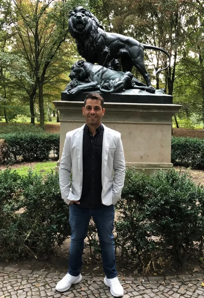 Francesco Perri, Gründer von Deine Mega Webseite, steht nicht nur im Park.